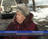 Это - не долина гейзеров. Хотя и похоже. Это всего-навсего прорыв трубы центрального отопления между домами № 19 и 17 на улице Добролюбова. Жильцы дома уверяют - такое здесь случается каждую зиму - трубу прорывает, чинить её, не смотря на обращения граждан, не спешат. Вот и парят посреди улицы лужи горячей воды. В этом году они появились несколько недель назад. Надежда Давыдович, жительница дома № 17 по ул.Добролюбова : - Больше 10-ти дней течёт из этой трубы вода горячая. По дому, по дороге - везде. Мы звоним, нам обещают, что всё сделают. Говорят: «Мы знаем, спасибо что позвонили. На этом всё кончается». Звонили в Примтеплоэнерго, в мэрию звонили в диспетчерскую. И везде один и тот же ответ. Мы всё знаем, всё под контролем.