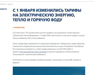 ДЭК на своем сайте известила, что с 1 января изменились тарифы на электрическую энергию, тепло и горячую воду.