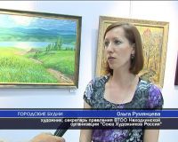 Стены галереи словно превратились в окна, за которыми открылся пестрый солнечный день уходящего лета. То перед нашими глазами лесная поляна, то морской берег, то городской пейзаж. Сочные красные арбузы так и просятся в руки. Легкие стремительные парусники рассекают морскую гладь. Так и кажется,что вот-вот на лицо упадут соленые брызги. Ольга Румянцева, художник, секретарь правления ВТОО Находкинской организации "Союз Художников России". Название выставки "Лето-2009" говорит само за себя. И поэтому все картины, которые представлены на выставке, естественно, они посвящены прошедшему лету. И поэтому и впечатление, и настроение выставки - оно очень летнее, сочное, солнечное. Все работы связаны именно с летом. Это какие-то натюрморты, пейзажи. Обязательное присутствие хороших, теплых, очень эмоциональных моментов в каждой работе. В новой экспозиции 17 находкинских авторов представили 67 работ, выполненных в технике живописи, графики, батика. Практически все работы новые, написаны в этом году. В выставке принял участие почти весь состав находкинской организации Союза художников России, а также - кандидаты на вступление в Союз. Ольга Румянцева, художник, секретарь правления ВТОО Находкинской организации "Союз Художников России". Это председатель находкинской организации СХР Виталий Павлович Лаханский. Он, как всегда, нас радует новыми и сочными работами. Галинов Андрей Анатольевич, Козич Ольга Павловна, Усов Виктор Константинович, Усова Наталья Степановна... В общем, очень большое разнообразие. Можно, конечно, каждого участника перечислить этой выставки. Торжественная часть открытия началась с приветственного слова первого заместителя главы Находкинского городского округа Бориса Гладких. Борис Гладких, первый заместитель главы Находкинского городского округа. Я хотел бы всех вас поздравить с такой замечательной выставкой, поблагодарить художников еще раз, директора. Пожелать вам всего наилучшего, благополучия и успеха во всех ваших начинаниях. Также много теплых слов прозвучало от участников и гостей выставки. Выступил председатель правления находкинской организации Союза Художников Виталий Лаханский, прозвучали приветствия и пожелания от участника выставки, члена-корреспондента Международной Академии культуры и искусств Евгения Самбурского, награжденного Орденом Служения Искусству 1 степени. Выступали художники и гости выставки. В своих словах все они отметили важность экспозиции, растущее год от года мастерство находкинских авторов, возможные перспективы на будущее, впечатления, которые производит выставка на посетителей. Владимир Листровой, художник. Во-первых, очень яркая жизнеутверждающая выставка. Работы очень впечатлили, конечно. Молодцы художники-находкинцы. Я для себя здесь почерпнул живость цвета. Первая работа сразу, Лаханского. Обалденные работы, молодцы. Весь сентябрь будут радовать посетителей яркие солнечные работы, представленные в галерее "Вернисаж". На эти дни здесь поселится яркое настроение выставки "Лето - 2009". Василий Тарасенко, Алексей Стасинский, Евгений Евсеев. Информационное Агенство "Каскад-Находка", специально для "Восток-ТВ". Информационное агентство «Каскад-Находка» специально для «Восток-ТВН» 2009г. Монтаж: Евсеев Евгений, Видеооператор: , Корреспондент: |
