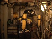 По легенде загорелось машинное отделение Химзачистной станции «лазурная-2». При проведении сварочных работ были нарушены правила пожарной безопасности. Специалисты говорят, что такому пожару автоматически присваивается 2 степень сложности. На масштабные учения собрались все подразделения Находкинского гарнизона. Первым делом с судна необходимо эвакуировать людей. Отряд газодымозащитной службы пробирался по темным узким коридорам в поисках пострадавших. А на улице тем временем разворачивали магистраль. Объем воды требовался большой, поэтому пришлось применять пожарно-насосную станцию. Кстати, воду в таких ситуациях берут прямо с моря. Условных пострадавших эвакуировали, сам пожар был ликвидирован уже через 7 минут. Однако пожарные все-таки оценивают свою работу на твердую четверку. Говорят, в их непростой работе нет предела совершенству. Учения такие регулярно проводятся на территории города. Иван Моль, врио начальника пожарной части № 6Получают необходимые навыки и обычные горожане, которые работают на объектах повышенной опасности с массовым пребыванием людей.Информационное агентство «Каскад-Находка» специально для «Восток-ТВН» 2012г. Корреспондент: , Видеооператор: Гринчак Денис, Монтаж: Гринчак Денис |