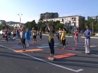 | | На площадке перед ДЮСШ «Приморец» собрались йоги-профессионалы, любители и просто жители города, кто только собирается заниматься этой дисциплиной.