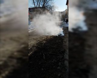 Вторую неделю из порыва теплотрассы во дворе дома №8 по ул. 25 Октября льётся горячая вода.